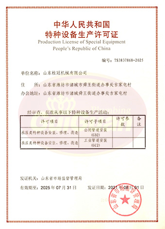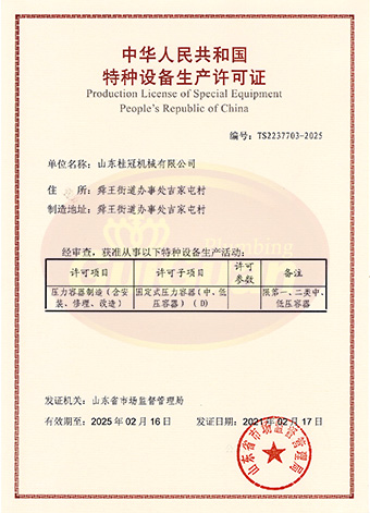 山東桂冠機(jī)械有限公司成立于2008年,注冊(cè)資金1600萬(wàn)元,現(xiàn)有員工200多人,中高級(jí)技術(shù)管理人員45人,占地面積27000多平方米,生產(chǎn)車間面積12000多平方米。公司具備壓力容器產(chǎn)品的設(shè)計(jì)、制造(證書編號(hào)為:TS2237703-2025)、壓力管道安裝(證書編號(hào)為TS3837607-2025)全套壓力容器資質(zhì);通過國(guó)家ISO9001質(zhì)量管理體系認(rèn)證、美國(guó)ASME認(rèn)證、歐盟CE認(rèn)證;擁有建筑安裝機(jī)電工程專業(yè)承包叁級(jí)資質(zhì)、建筑工程施工總承包叁級(jí)資質(zhì)及對(duì)外貿(mào)易經(jīng)營(yíng)出口權(quán)…